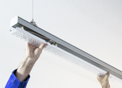 Sie ermöglicht eine unkomplizierte Nachrüstung von Leuchten, verschiedener linearer Leuchtstoffröhrenvarianten, ohne dass aufwendige bauliche Maßnahmen erforderlich sind